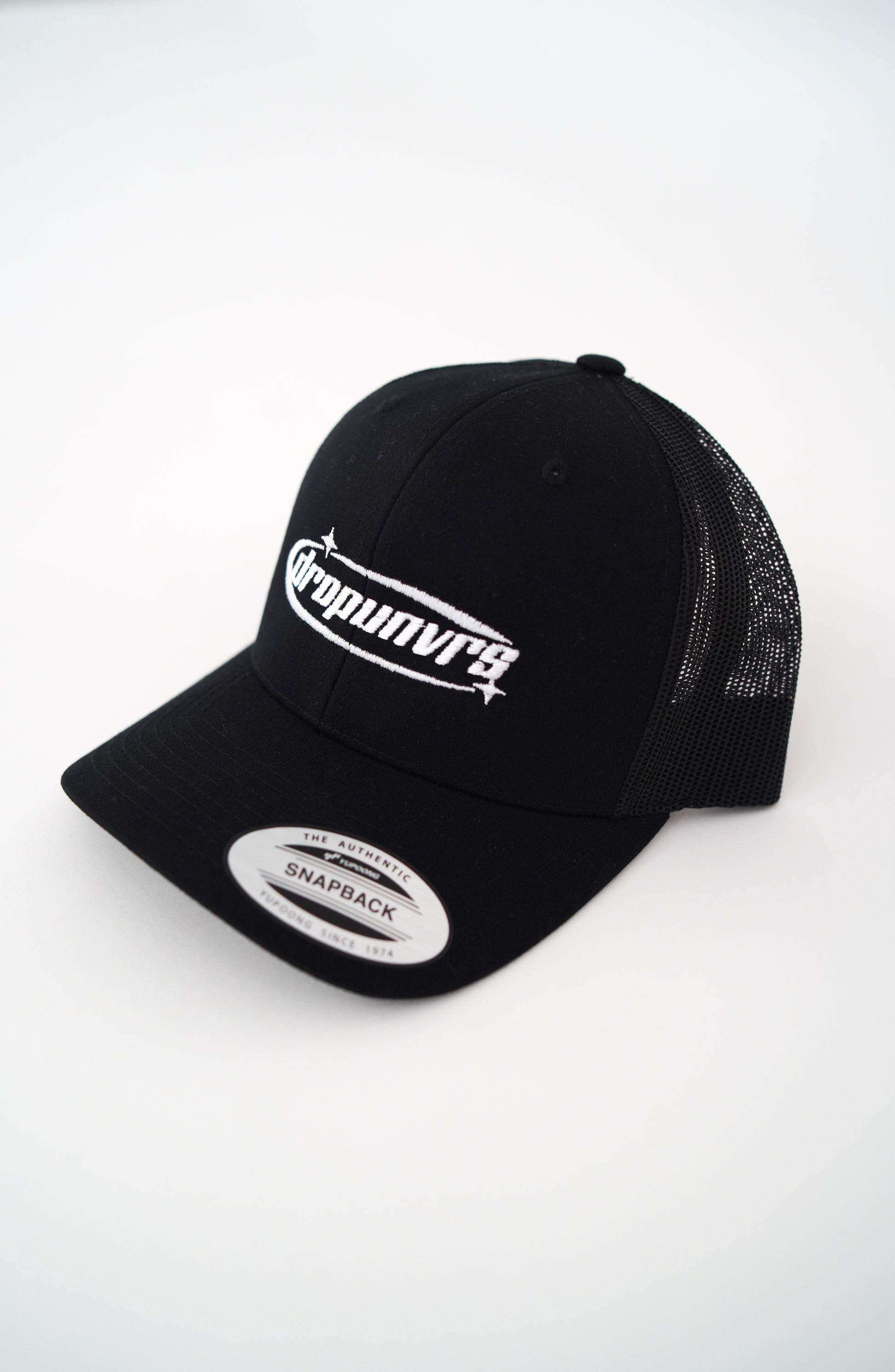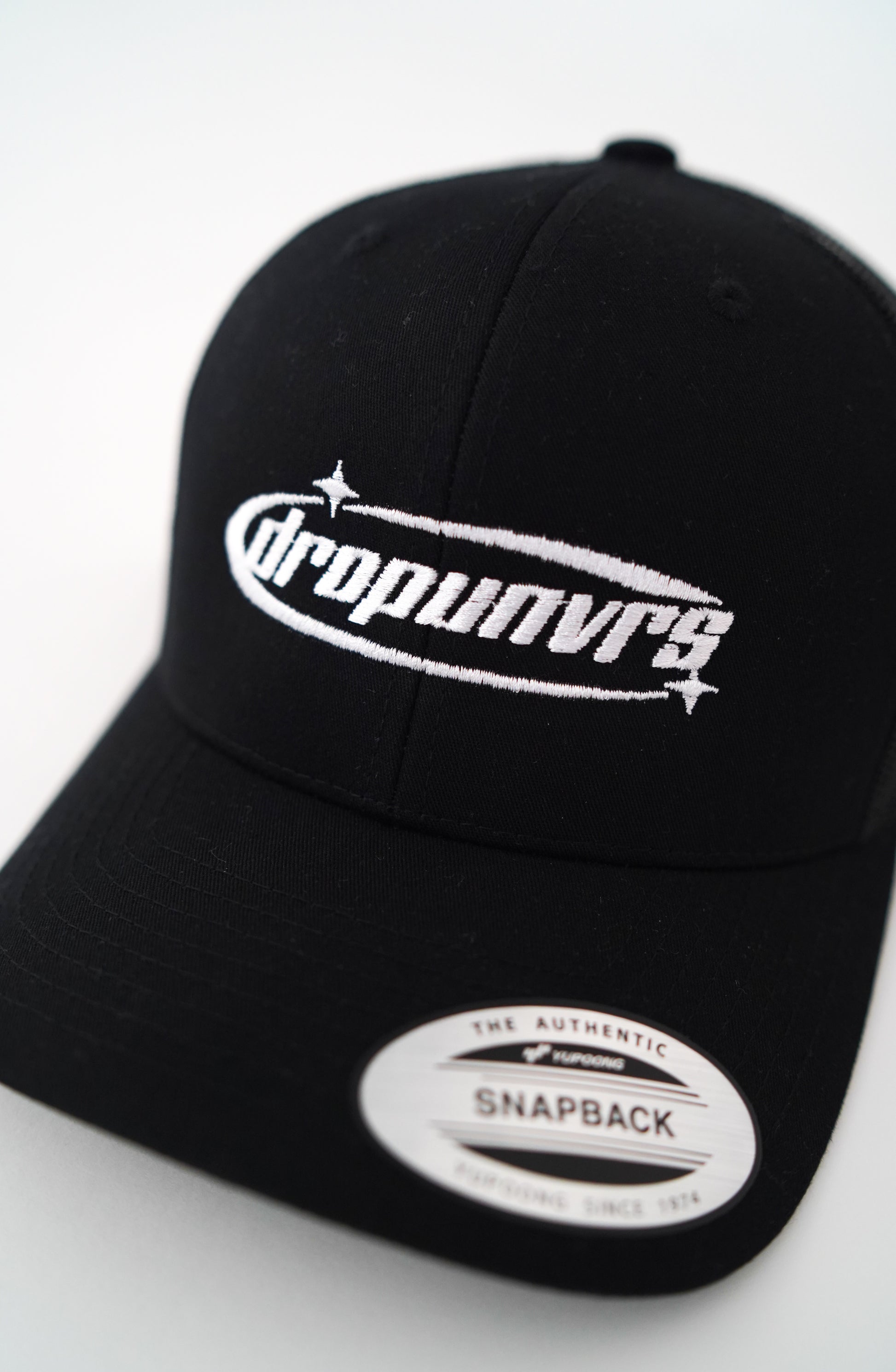 Bordado frontal DROPUNVRS de precisión, con relieve y textura premium.